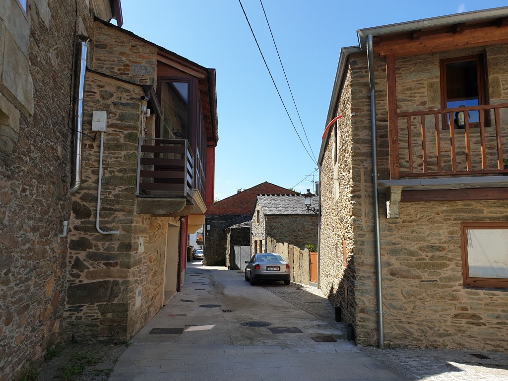 Destacan dos edificios fortificados, uno en las mentadas fincas 20-22 y el otro (Llamado “Pazos de Rexiduría e da Cadea”) en la núm. 1 de la Plaza de la Iglesia, donde residían el Ayuntamiento y la Cárcel (24).