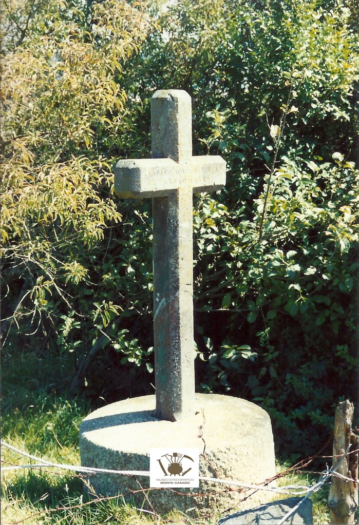 Atopámonos cunha cruz tamén rexia e forte pola súa feitura, lisa, sen imaxes, mais cunha inscrición da persoa que o mandou facer e erixir, e o ano. No brazo superior vertical leva escrita a palabra POR, nos horizontais PEDRO CAO ANO DE 1860, a palabra DE vai escrita como era común para abreviar co E dentro do D. En conxunto lese: