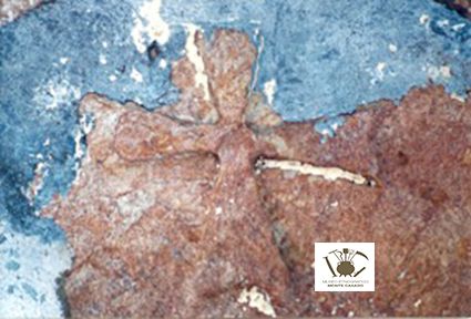 En realidade é unha roda crucífera, unha cruz dentro dun círculo. Non é moi grande, máis ben pequena, o que tamén dificulta a súa localización. Está no lintel da fiestra.