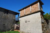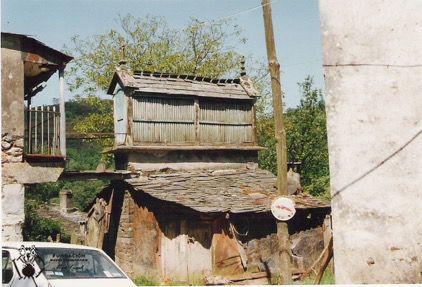 Hoxe móstrovos outro exemplar alto de hórreo no que se refire á súa sustentación. E como veredes con algunha que outra curiosidade. Está situado case enfronte da Igrexa ou Capela que hai na Fragachá. A soleira é maciza e alta, a algo máis de dous terzos colocouse, por un dos laterais (o que amosa a foto) un tellado para un alpendre onde se garda a cisterna do tractor. Por riba desta altura, unha pasarela (de chanta) de acceso ao hórreo que vai dende o balcón da casa ata a porta de acceso. Este paso está por debaixo do tornarratos, non queda á mesma altura da porta. Tamén se pode observar, na segunda foto, que ten unha balaustrada de ferro forxado que na primeira non tiña (fixéraa nunha visita anterior). (Lembra este xeito de acceso ao hórreo III do Caneiro).