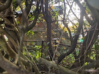 Trala poda parcial de loureiros, nunha finca pegada á pista, puiden ver un hórreo do que eu non sabía, pois estaba oculto pola ramaxe das árbores.