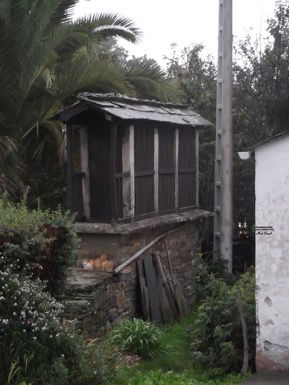 Está suspendido a unha altura de dous metros do chan e situado enriba duns catro muretes de ladrillo e que debaixo aproveitarían o cuberto para gardar cousas.