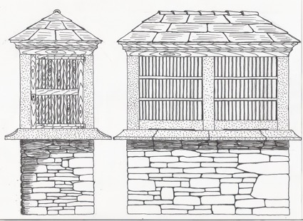 Nas fotos pódese ver un hórreo co secadoiro dos queixos na parte superior e co maínzo na parte inferior.